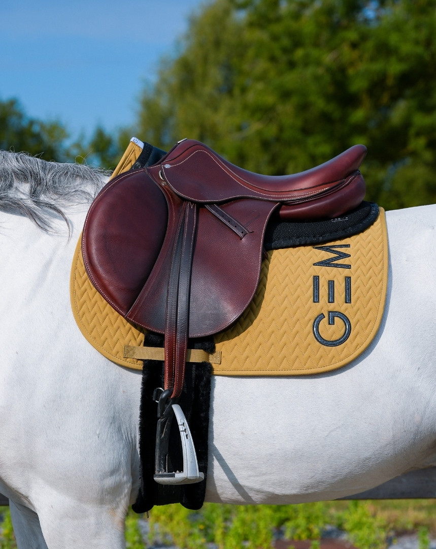 Gros logo GEM des 2 côtés du tapis, avec broderie à paillettes.