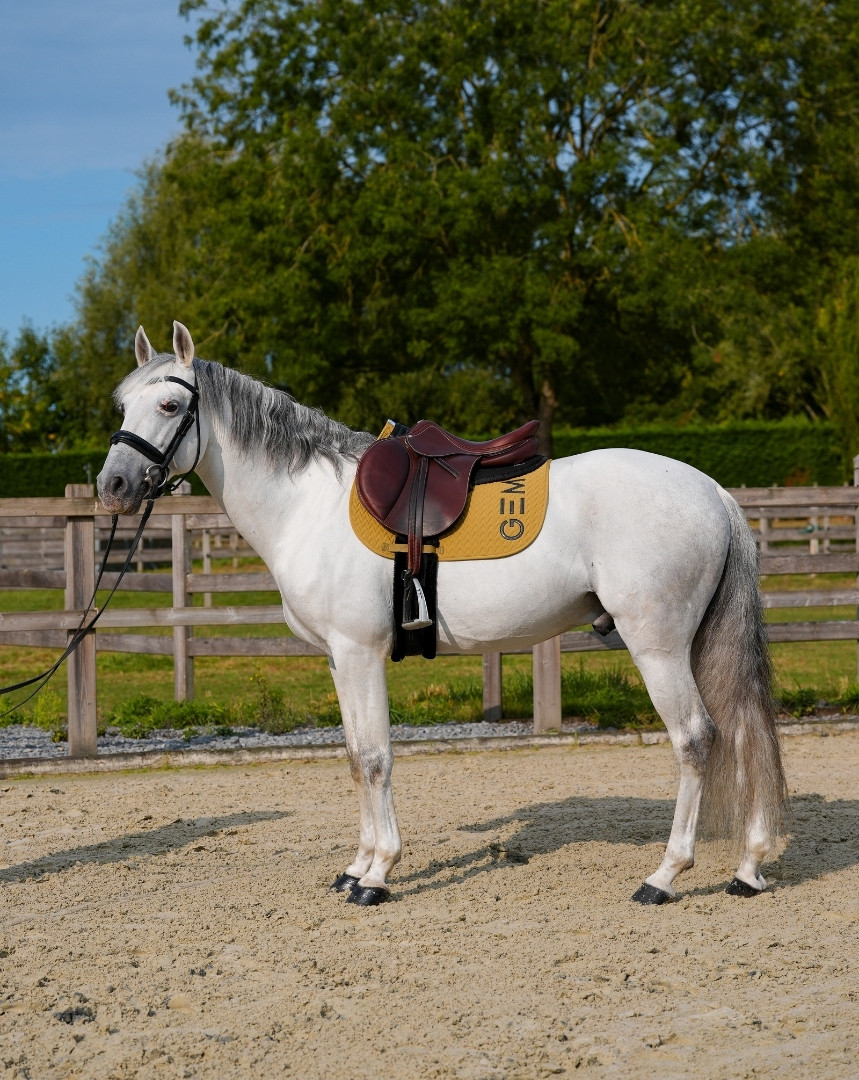 Intérieur du tapis en matière mesh 3D, qui garantit une absorption optimale de la transpiration, et un confort maximal pour le dos de votre cheval.