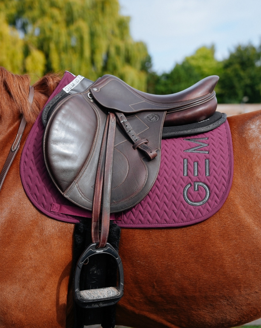 Gros logo GEM des 2 côtés du tapis, avec broderie à paillettes.