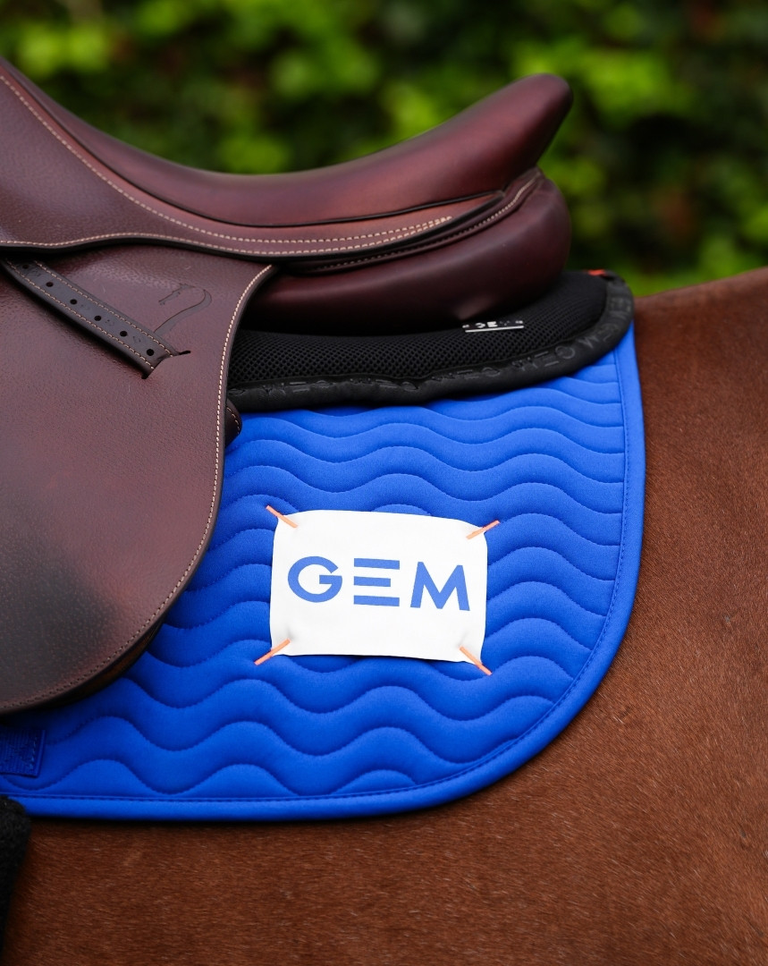 Un tapis aux couleurs de GEM, avec une étiquette qui arbore le logo, façon surpiqûres.