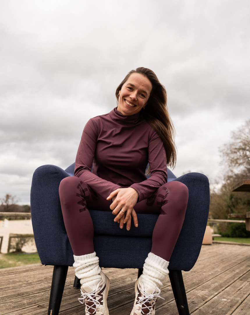 Une taille haute mais élastique ultra confort, des grips aux genoux pour le bon maintien en selle quand même, et un style à tomber… Il est même possible qu’on aille bosser avec !