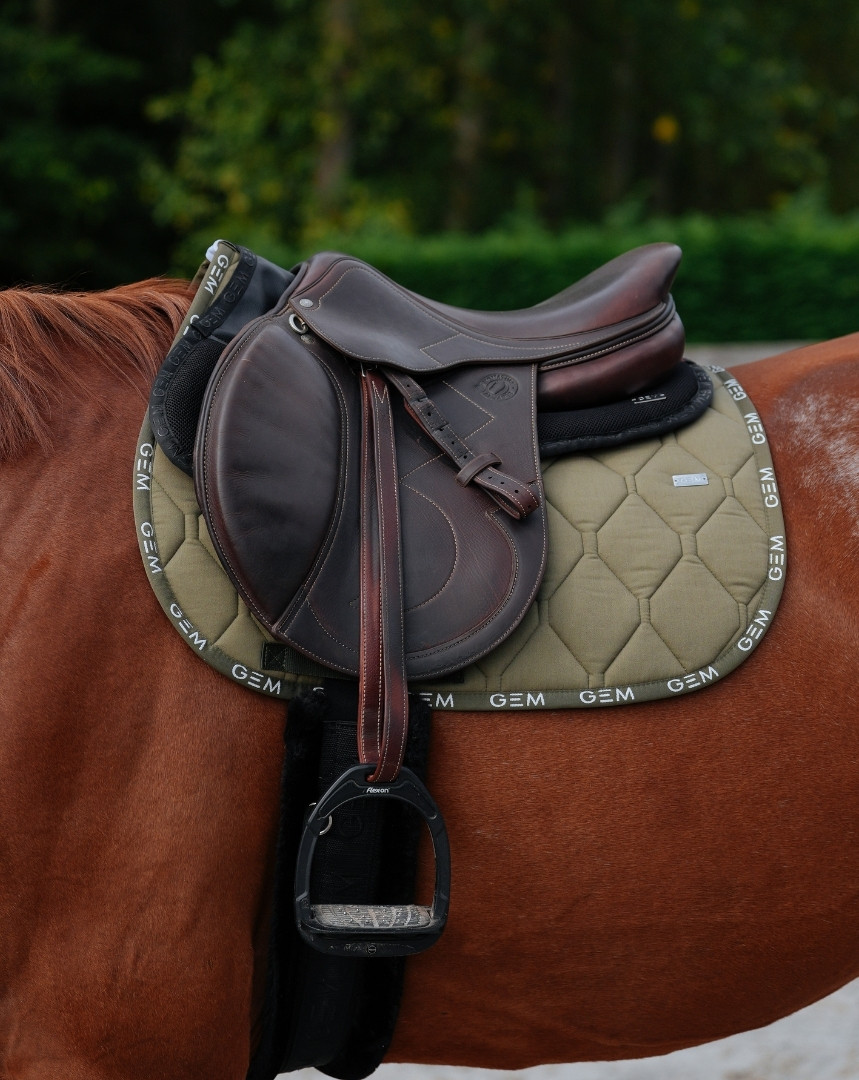 Our LOVE GEM saddle pad is definitely a style that adapts to our value of “performance” with its sport design and repeated GEM logo. It’s a new unique style that is 100% in cotton fabric.