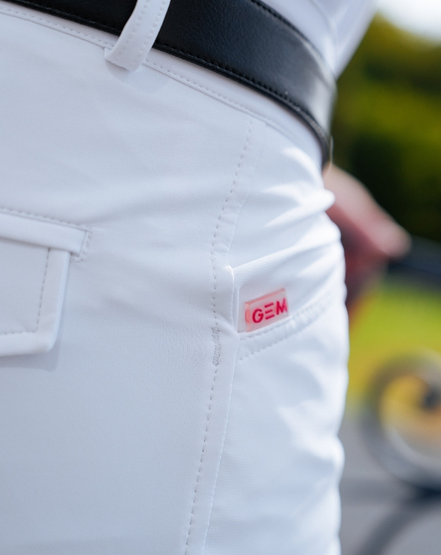 Technical breeches with clean, minimalist lines and knee grips for better stability in the saddle.