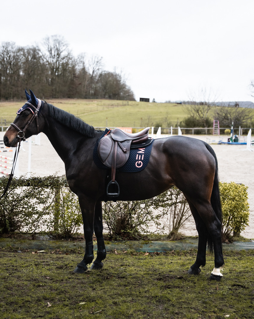 The GEM ear net, made of high quality fabric, is nice and wide on the poll area to make sure that it stays well in place under the bridle's headpiece. The stretch fabric adapts to your horse's ears giving them full comfort.