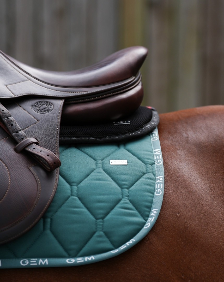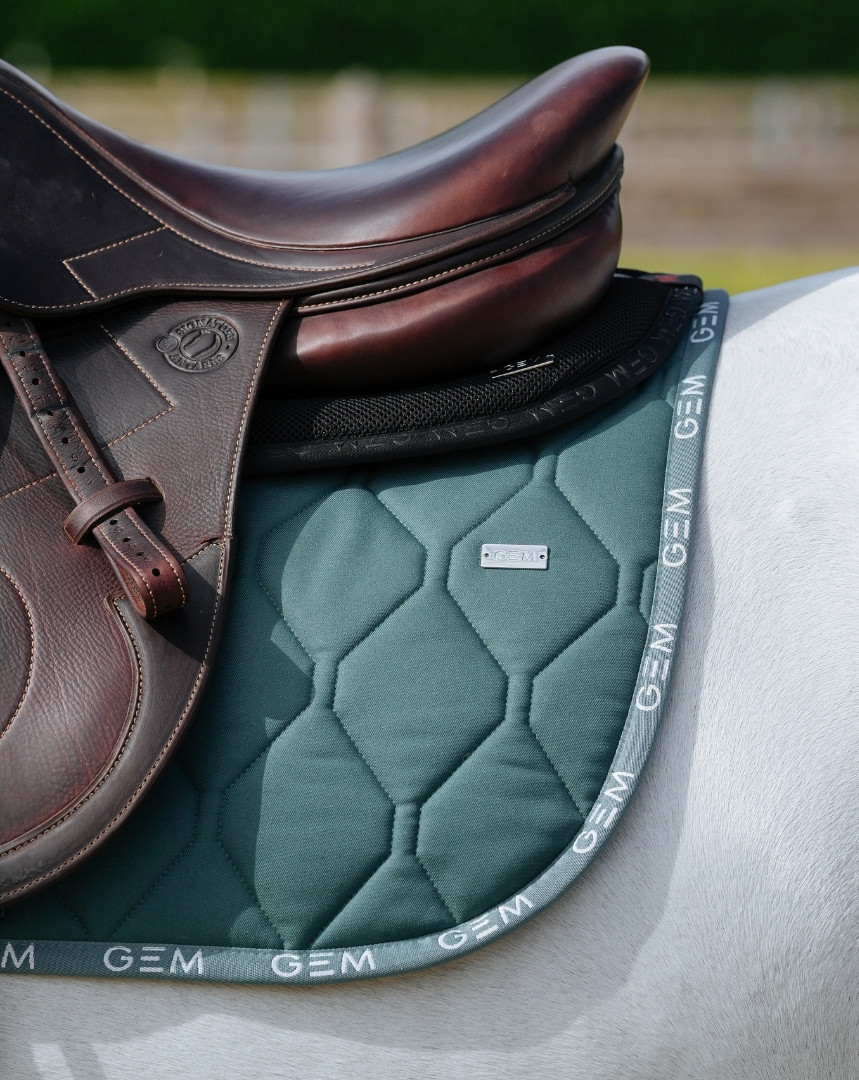 Our LOVE GEM saddle pad is definitely a style that adapts to our value of “performance” with its sport design and repeated GEM logo. It’s a new unique style that is 100% in cotton fabric.